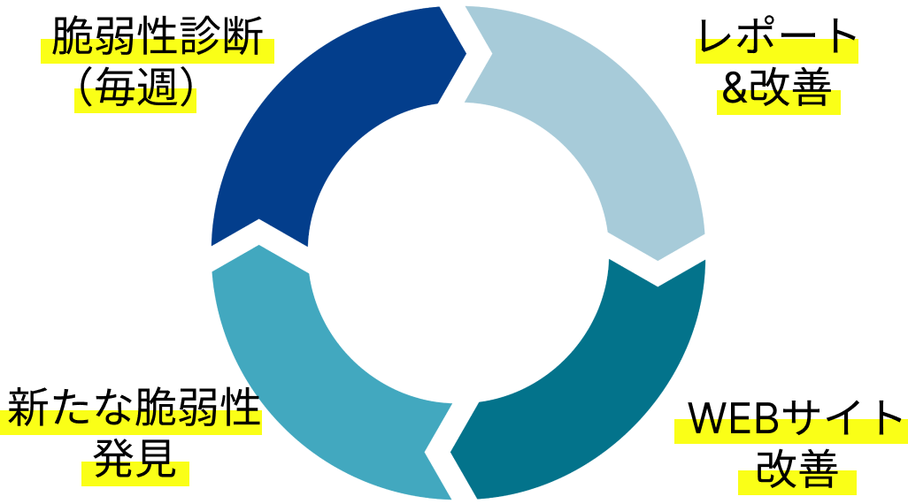 最新の脆弱性情報に基づき、毎週脆弱性診断を実行